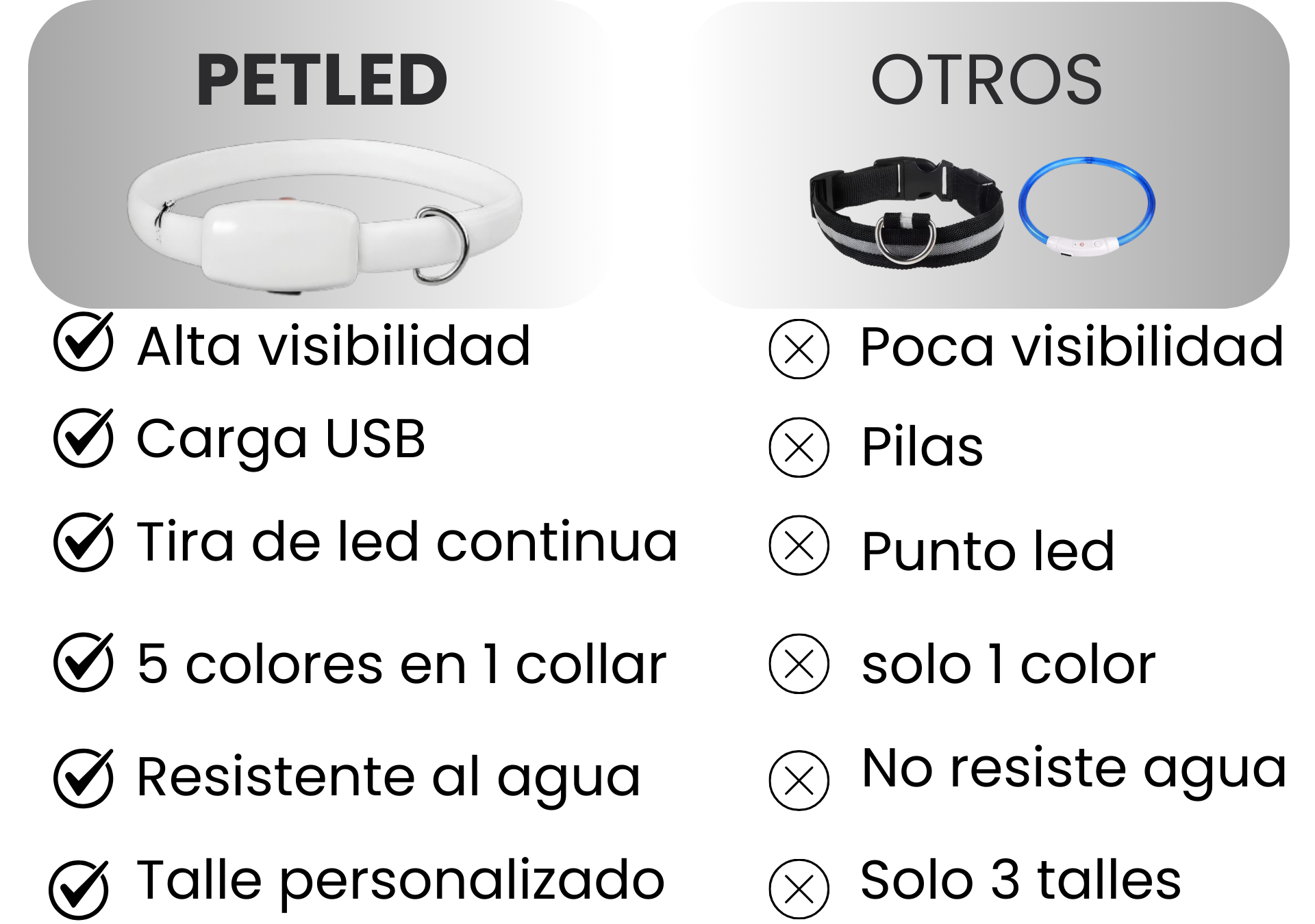 Collar con luz PetLed. Visible en la oscuridad